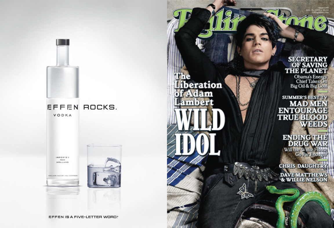 Print ad for EFFEN Vodka at an adult film award show.